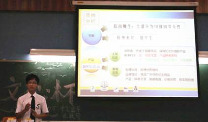 本网讯 510日下午,中文学院第二届文心杯专业技能大赛之文化产品营销策划赛决赛在七教107举行。本次比赛的主题是:如何在保持公益性不变的情况下,提高我校勤工实体“爱满屋”的利润,增加其影响力。比赛由团学社联部主办,主要面向我院文管专业的学生。西语学院党委书记方华,以及我院的袁瑾老师,左岩老师担任了本次决赛的评审。爱满屋的员工也作为嘉宾出席在比赛现场。