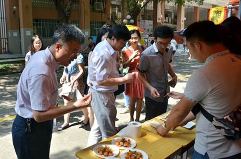 潇湘美景展区各个摊位向大家展示了湖南省包括凤凰古城、张家界、南岳衡山、洞庭湖等地的潇湘美景,让人身临其中,如痴如醉。除了美景,湖南给人的一大印象就是“辣”,就连路过的美国外教也对此表示十分认同。在“潇湘风味”的摊位上,各式各样的潇湘特色美食更是深受同学们的喜爱。